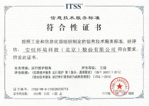 安恒新闻 / 安恒新闻 / 安恒集团获得 ITSS信息技术服务标准符合性证书